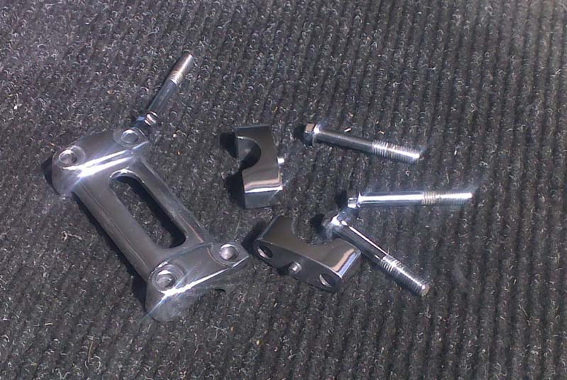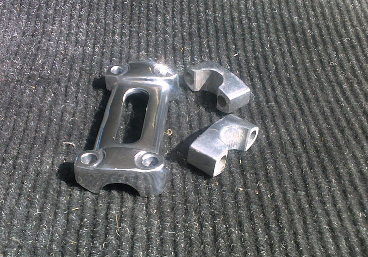Hier die fertige obere Klemmung neben unpolierten Klemmböcken.